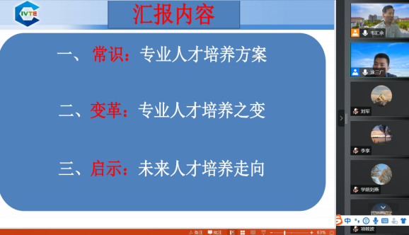 为做好2022版人才培养方案的修订工作,6月5日下午,我校邀请了教育部职业技术教育中心研究所培训部负责人涂三广博士对我校人才培方案修订工作进行了专题培训,此次培训也是我校职业教育骨干教师教学能力提升培训项目重要组成部分。培训利用在线腾讯会议的方式进行,由教务处处长韦汇余主持,教务处有关负责人及各学院院长、教学副院长、教研室主任、各专业负责人、专业带头人和骨干教师参加了培训。