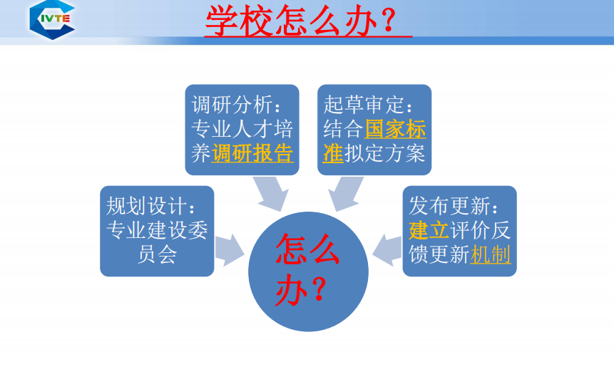 其次在编制人才培养方案方面,涂博士指出除了常识性的编制要求外,编制职业教育人才培养方案要基于具体的岗位工作任务,进行职业能力分析,进行科学的市场调研。这些是明确人才培养目标、规格,研判专业办学合理性的主要依据。不同层次职业教育的差异一定不是学分、学时上的差异,必须要在学生的知识、技能、素质上得以体现。这也可以用来解释学校升本中面临的专业申报问题。他强调市场调研的对象要涵盖具有代表性的龙头企业、企业集群,要对接具体岗位、真正了解他们对专业人才的需求。从调研结果中要能判断出影响专业人才培养质量的主要因素是产业链变革的问题还是专业培养本身的问题,从而采取不同修订方案。根据以上原则修订人才培养方案文本还仅仅是技术层面的,只有切实落实人才培养方案才能提高职业教育人才培养的质量。
